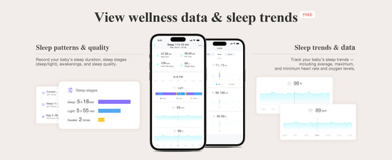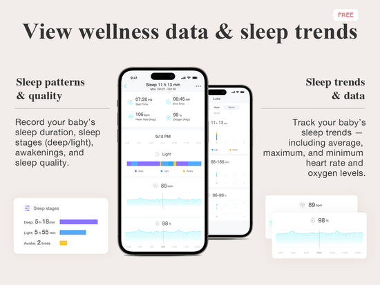 Access deeper wellness insights—heart rate, oxygen levels, and detailed sleep analysis—to better understand your baby’s sleep patterns.