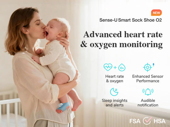 The Sense-U Smart Baby Sock Shoe Monitor O2 is FSA/HSA eligible, making it a thoughtful choice for baby registries, baby showers, and as a helpful pregnancy or postpartum essential.