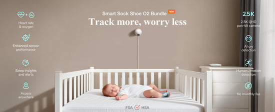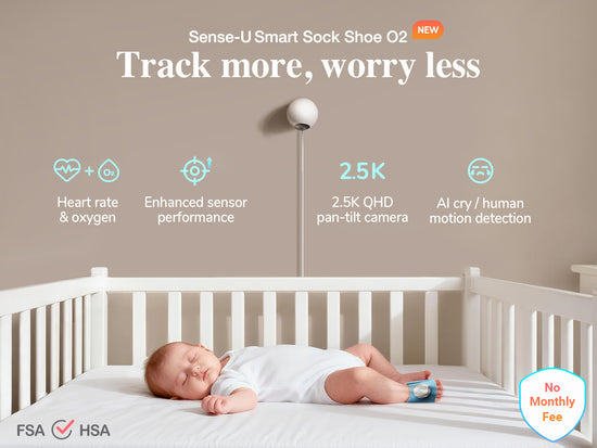 The Sense-U Smart Sock Shoe O2 Bundle combines advanced transmissive PPG technology with the Sense-U 2.5K Pan-Tilt-Zoom Baby Camera to give you a complete view of your baby’s well-being. Accurately track heart rate, oxygen levels (SpO₂), and sleep patterns, while also monitoring live video, motion, crying, and audio—all in one connected system.