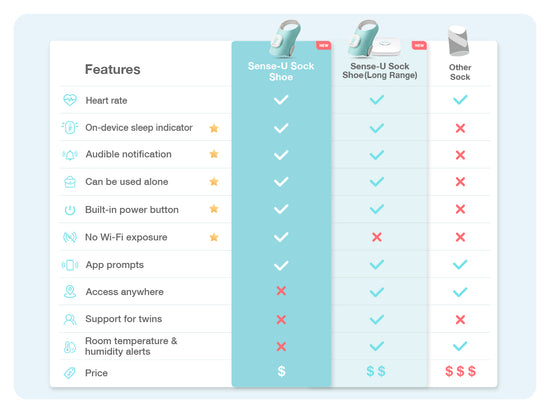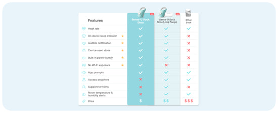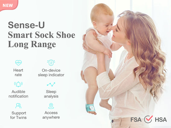 Long Range Sense-U Smart Baby Sock Shoe babyalarm sporer din babys puls, søvnbevægelser, lure og generelle søvnmønstre, uanset hvor du befinder dig.