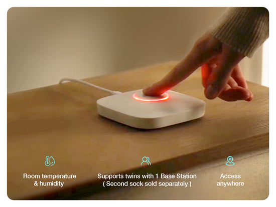 The base station not only connects the socks to your phone, but it also measures the room's temperature and humidity, which is super helpful to make sure their environment is just right.