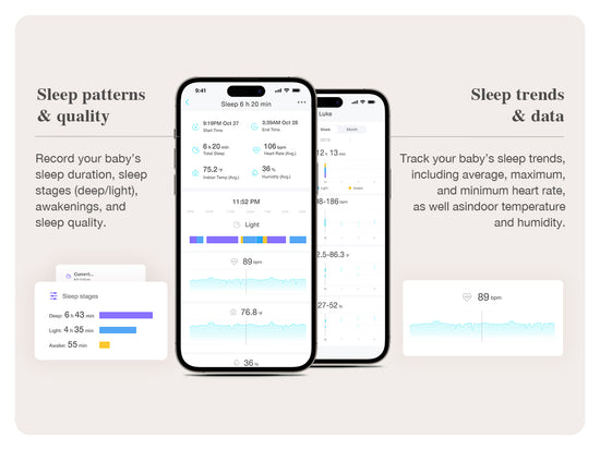Få detaljeret indsigt ud over standard søvndata, herunder puls og søvnbevægelse, for nemmere velværeovervågning og en bedre forståelse af din babys søvnmønstre.