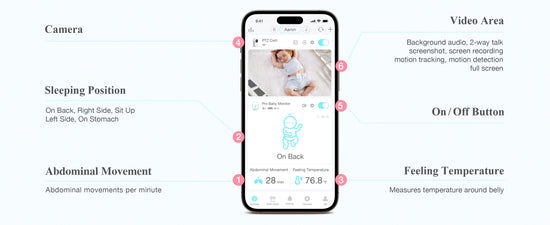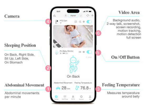 Das Sense-U Pro-Paket verfolgt die Atembewegung, Schlafposition und Gefühlstemperatur Ihres Babys und streamt jederzeit und überall 2.5K-HD-Videos.