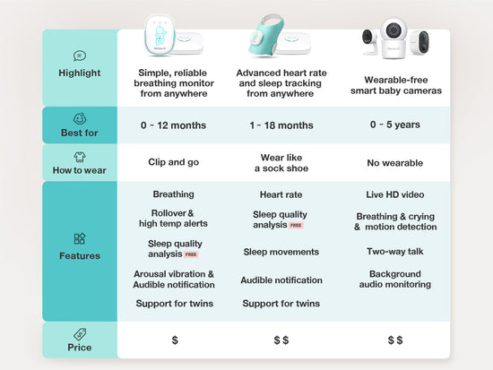 Im Gegensatz zu anderen Bewegungsmonitoren oder Videokameras erfasst das Sense-U Pro-Paket ein breiteres Spektrum an Daten Ihres Babys, darunter Atembewegung, Schlafposition, Temperatur, 2K-HD-Video und Hintergrundton – alles in einer umfassenden Lösung.