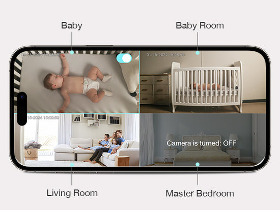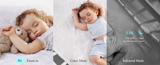 The 2.5K Pan-Tilt-Zoom baby camera captures delicate details with 2.5K crystal-clear clarity, letting you see and hear everything happening in your baby's room. The active background noise cancellation technology in the background audio, along with non-invasive night vision, allows you to monitor more closely anytime, anywhere.