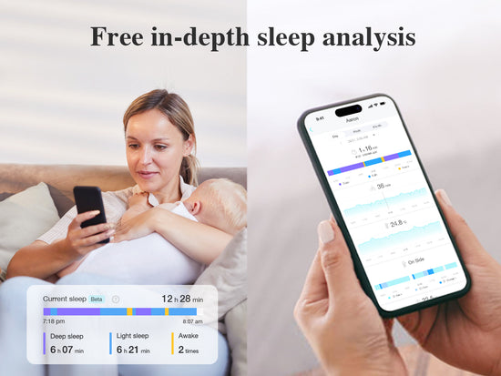Gain deeper insight into your baby’s sleep with detailed cycle reports, including deep and light sleep stages, awake times, and overall sleep quality. Provides peace of mind and valuable insights for more restful nights.