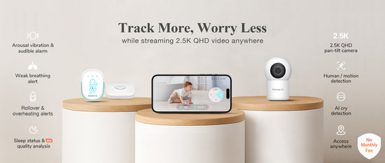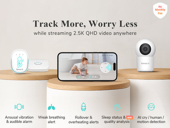 The Sense-U Pro bundle tracks your baby's breathing movement, sleeping position, and feeling temperature, while streaming 2.5K HD video anytime, anywhere.