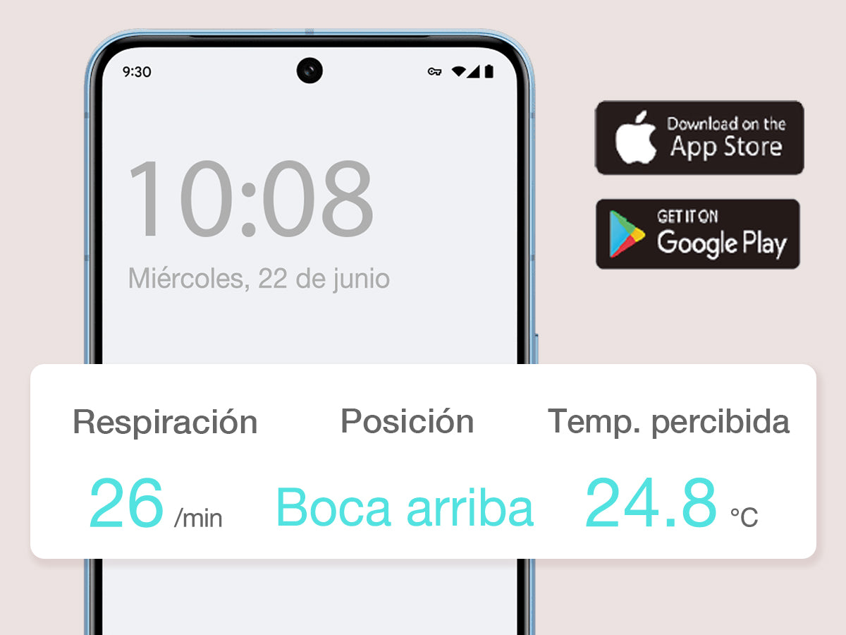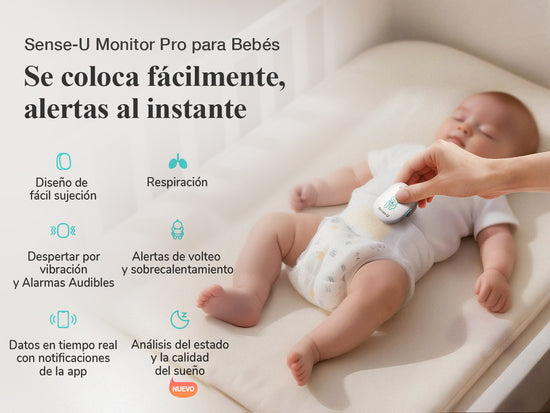 Para los recién nacidos sanos, siempre se recomienda colocarlos boca arriba para dormir y mantener una temperatura adecuada, ni demasiado caliente ni demasiado fría. El Monitor Inteligente para Bebés Sense-U Pro rastrea la posición al dormir y la temperatura percibida de tu bebé, enviando alertas audibles y en la aplicación en caso de volteo o sobrecalentamiento.