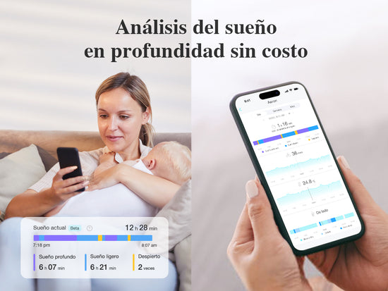 Obtén una comprensión más profunda del sueño de tu bebé con informes detallados de los ciclos, que incluyen las etapas de sueño profundo y ligero, los periodos en que está despierto y la calidad general del sueño. Te brinda tranquilidad y valiosa información sobre las necesidades únicas de tu bebé para noches más reparadoras.