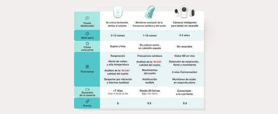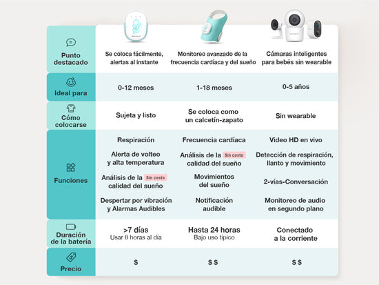 Detecta la causa del posible malestar durante el sueño —como respiración lenta, dormir boca abajo o sobrecalentamiento— en lugar de solo el efecto, como una frecuencia cardíaca baja. Esto permite alertas más rápidas en comparación con los monitores de frecuencia cardíaca.