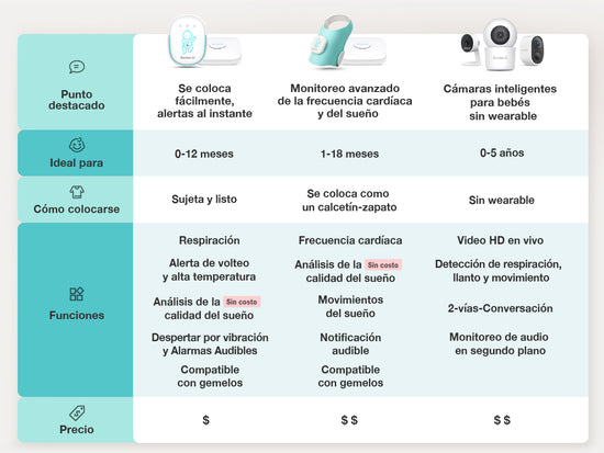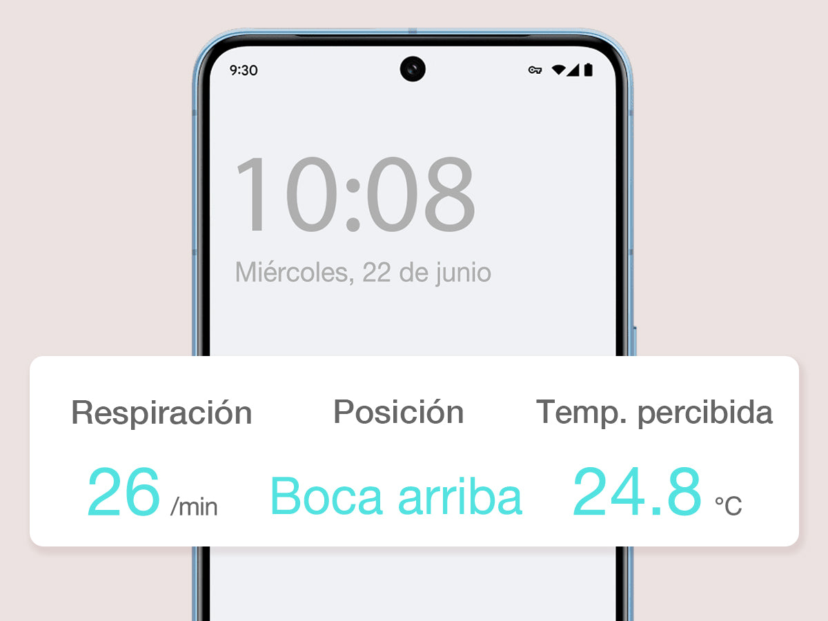 Se detecta la causa del posible malestar durante el sueño —como una respiración lenta, dormir boca abajo o el sobrecalentamiento— en lugar de solo el efecto, como una frecuencia cardíaca baja. Esto te brinda alertas más rápidas ante posibles problemas relacionados con el sueño que los monitores de frecuencia cardíaca.