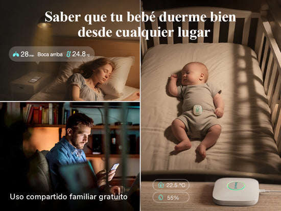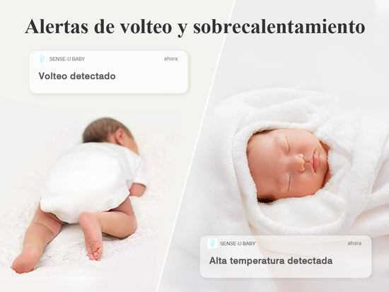 Para los recién nacidos sanos, siempre se recomienda acostarlos de espaldas para dormir a una temperatura adecuada, ni demasiado caliente ni demasiado fría. El monitor inteligente para bebés Sense-U Pro monitorea la posición al dormir y la temperatura de tu bebé, enviando alertas en caso de que se duerma boca abajo o de sobrecalentamiento.