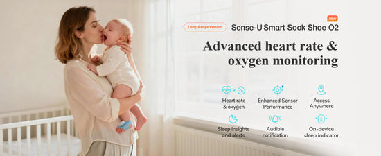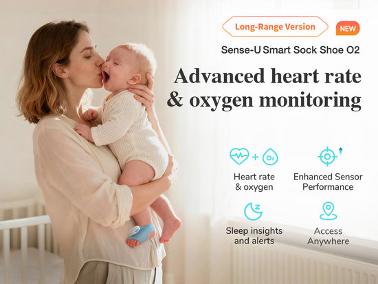 Le tout nouveau moniteur pour bébé longue portée Sense-U Smart Sock Shoe O2 est désormais doté de la technologie PPG transmissive avancée pour une précision de mesure accrue. Il permet un suivi plus précis du rythme cardiaque, du taux d'oxygène et des cycles de sommeil de votre bébé, où que vous soyez, offrant ainsi aux parents plus de sérénité et de clarté.
