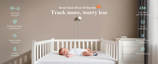 Le kit Sense-U Smart Baby Sock Shoe O2 suit le rythme cardiaque, le taux d'oxygène et les cycles de sommeil de votre bébé, tout en diffusant des vidéos HD 2,5K à tout moment et n'importe où. Grâce à sa technologie PPG transmissive avancée, il offre une surveillance plus précise pour une plus grande tranquillité d'esprit.