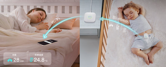 他の動作またはスマートモニターとは異なり、Sense-Uスマートベビーモニタープロは腹部の呼吸運動、睡眠姿勢、感覚温度などの幅広いウェルネスデータを追跡します。覚醒振動、音声アラート、アプリ通知も備えており、家庭内または外出先で迅速に対応することができます。これにより、より安心して少ない心配で赤ちゃんの状態を把握できます。