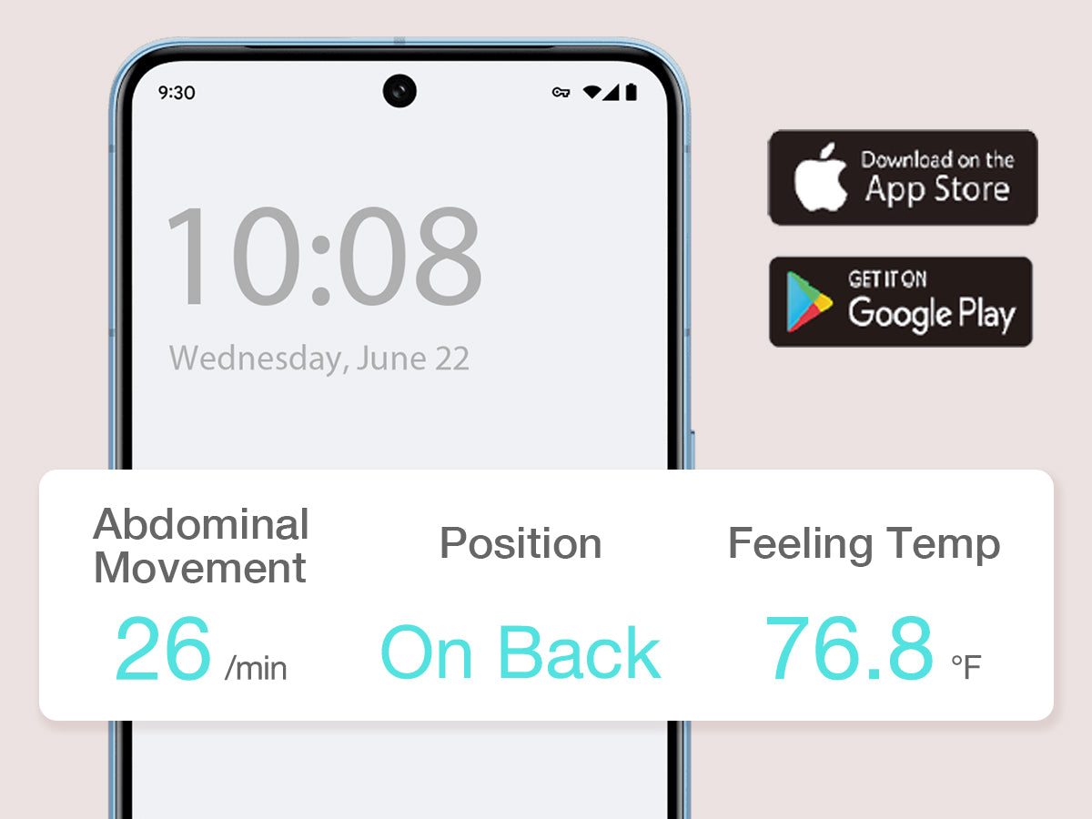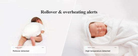 For healthy newborn babies, it is always recommended to place them on their backs to sleep at the recommended temperature—not too hot or too cold. The Sense-U Pro baby monitor tracks your baby's sleeping position and feeling temperature, providing audible and app alerts for rollover and overheating.