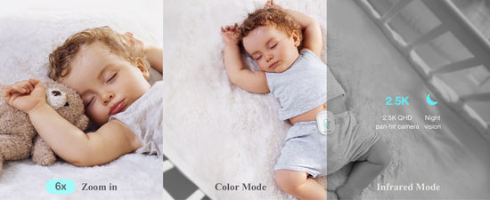 The 2.5K Pan-Tilt-Zoom baby camera captures delicate details with 2.5K crystal-clear clarity, letting you see and hear everything happening in your baby's room. The active background noise cancellation technology in the background audio, along with non-invasive night vision, allows you to monitor more closely anytime, anywhere.