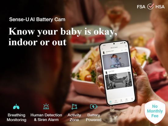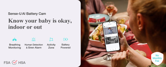 FSA/HSA eligible and requiring no monthly fees, the Sense-U AI Battery Camera is a perfect choice for baby registries, baby showers, pregnancy essentials, and postpartum must-haves.