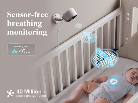 Utilized AI technology and a sensor-free Breathing Badge, the Sense-U Smart AI Battery Baby Camera and the Sense-U Baby app analyze over 40 million pixels per second and detect even the tiniest breathing movement of your baby - to provide you with greater reassurance and your baby with enhanced comfort.