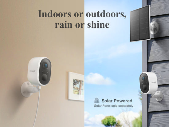 The Sense-U AI Battery Camera features 1080p HD video, background audio, night vision, two-way talk, IP65 waterproofing, a rechargeable battery with optional solar panel, 6x zoom, motion detection, and secure Wi-Fi. It lets you see, hear, and talk to your child clearly - indoors or outdoors, rain or shine.