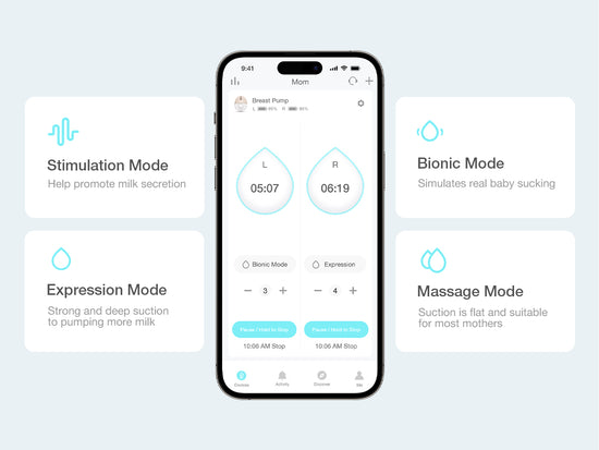 • SMART APP CONTROL FOR DISCREET PUMPING: Use the free Sense-U Baby app to discreetly switch on or off your pumps, adjust your pumping flow, monitor your sessions — all without reaching into your bra. With 4 suction modes and 10 adjustable levels, this wearable breast pump delivers a spa-like experience that mimics natural breastfeeding, offering a gentle rhythm without tugging or discomfort. You can also log the volume of each session for convenience.