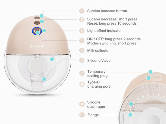 • BPA-FREE & EASY CLEANING: Made from BPA-free materials, the Sense-U Electric Breast Pump prioritizes safety and convenience. Its 4 detachable parts make cleaning quick and easy, whether by handwashing or dishwasher.